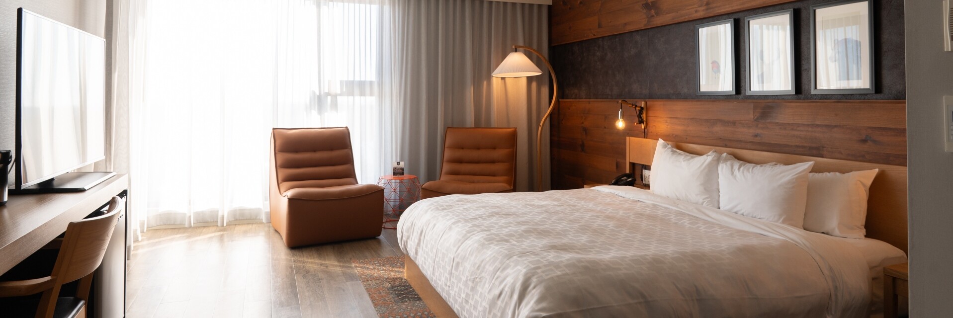 This compact, comfortable unit offers all mod cons. It has a king-size bed, a work desk and a full bathroom featuring a glass-walled shower with an oversized shower head. Some rooms are interconnected (subject to availability).